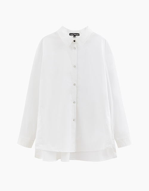 Стильная школьная белая блузка с длинным рукавом для девочки. Комфортная удлинённая модель А-образного силуэта. Изделие из поплина с разрезами в боковых швах. Блузку можно носить полностью или частично вправив, или навыпуск.