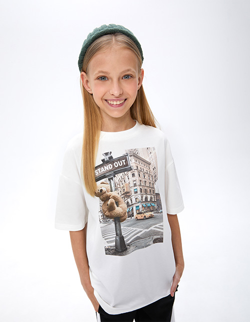 Трендовые чёрные брюки джерси для девочки. Прямая модель со средней посадкой. Изделие без застежки, на мягком эластичном поясе. Брюки с декоративными контрастными вставками по всей длине по бокам. Карманы в боковом шве.