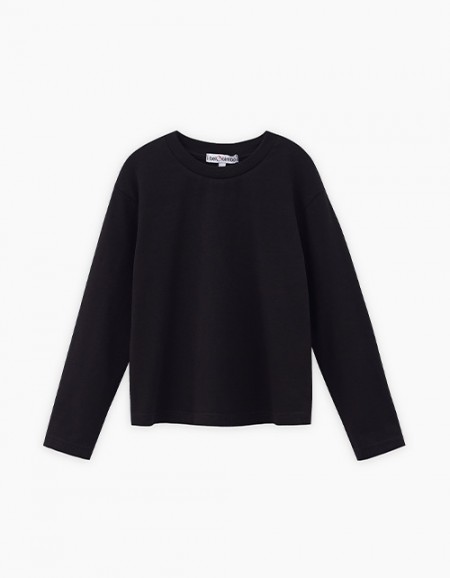 Стильный кроп-топ для девочки из мягкого бархата глубокого синего цвета. Прямой силуэт, длинный расклешённый рукав. Высокая горловина. Застёжка на молнию спереди. Эффектный акцент для стильных образов и особых случаев.