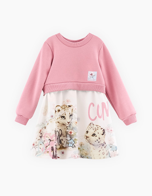 Свитшот приятного розового оттенка для девочки. Модель прямого объёмного силуэта. Спущенная линия плеча. Воротник, манжеты и низ изделия из эластичной рибаны. Изделие из футера с бархатистым эффектом. Свитшот декорирован авторской DTF-печатью и стразами.