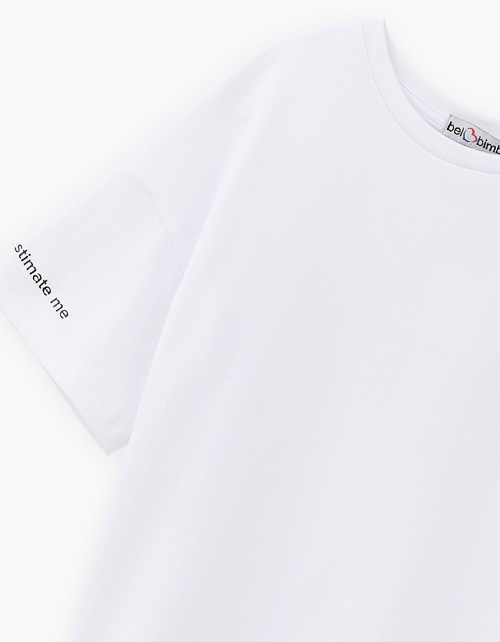 Белая футболка. Прямая объёмная модель со спущенной линией плеча. Удлинённые рукава и эластичная горловина из рибаны обеспечивают комфорт. Авторский мотивационный принт. Универсальная модель, которая легко комбинируется и подходит для разных случаев.