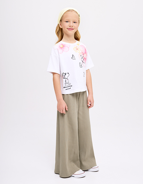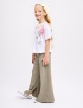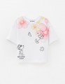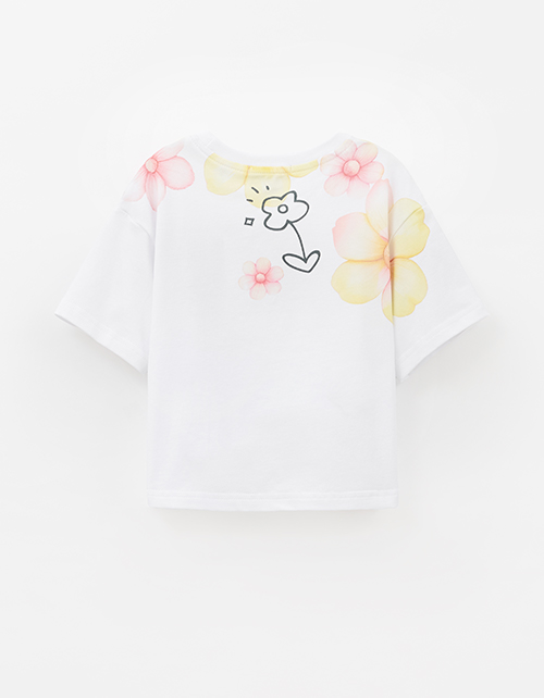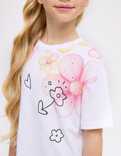 Белая укороченная футболка из мягкого хлопка создаёт лёгкий, современный образ. Oversize-посадка и прямой крой дают свободу движений. Авторский цифровой принт со стразами добавляет выразительный акцент и подчёркивает характер модели.