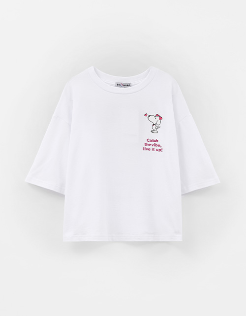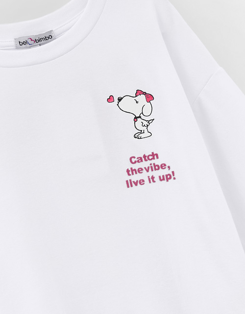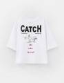 Белая укороченная футболка с oversize посадкой создаёт расслабленный образ. Прямой крой и приспущенная линия плеча дают свободу движений. Принт с DTF, трансфером и флоковой плёнкой добавляет выразительный акцент и подчёркивает характер модели.
