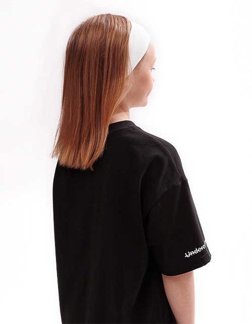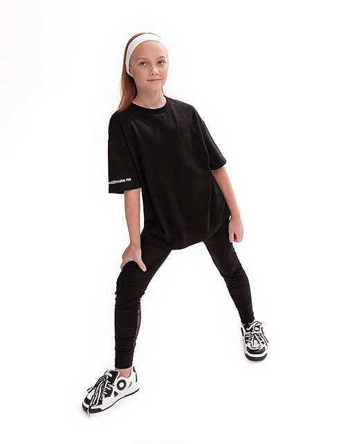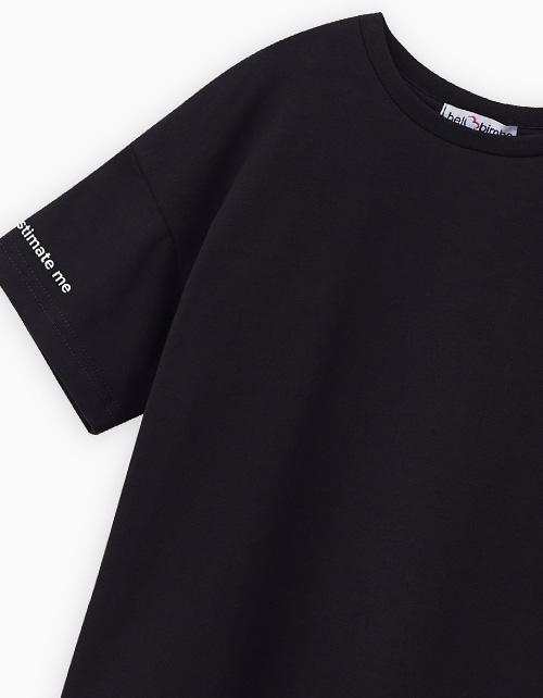 Чёрная футболка. Прямая объёмная модель со спущенной линией плеча. Удлинённые рукава и эластичная горловина из рибаны обеспечивают комфорт. Авторский мотивационный принт. Универсальная модель, которая легко комбинируется и подходит для разных случаев.