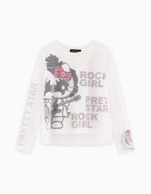 Чёрный топ для девочки. Укороченная модель комфортного прямого силуэта. Эластичная горловина. Комбинация материалов: мягкая сетка (на спинке) и кулирная гладь. Топ с авторскими принтами, инновационная DTF-печать, устойчивая к многократным стиркам.