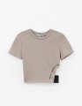 Кроп-топ из плотного кашкорсе оттенка олива формирует собранный, выразительный силуэт. Прилегающая посадка подчёркивает форму, при этом ткань не просвечивает. Термотрансферная плёнка добавляет аккуратный акцент и поддерживает характер модели.