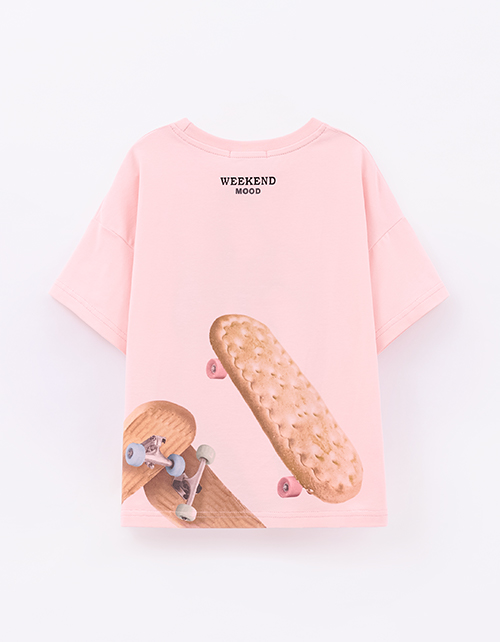 Пудрово-розовая футболка из мягкого хлопка создаёт лёгкое, спокойное настроение. Oversize посадка и прямой крой дают свободу движений. Приспущенная линия плеча подчёркивает расслабленный силуэт. Цифровой принт с термоплёнкой добавляет выразительный акцент
