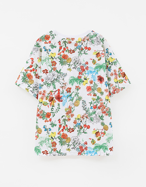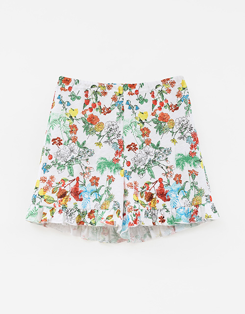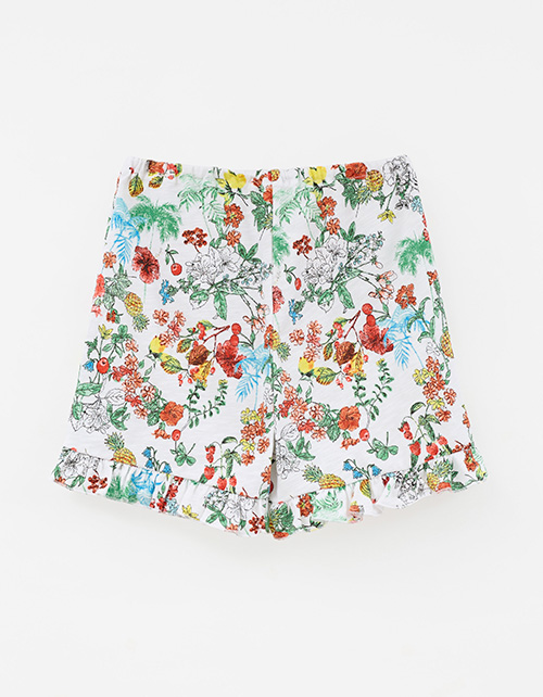 Пижамный сет из натурального хлопка для девочки: футболка и шорты с ярким принтом-садом. Сон в стиле мечты - мягкая ткань, эластичная горловина и лёгкие рюши дарят комфорт и свободу движений. Гипоаллергенный, дышащий, идеальный для сна и отдыха.