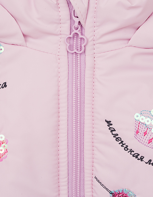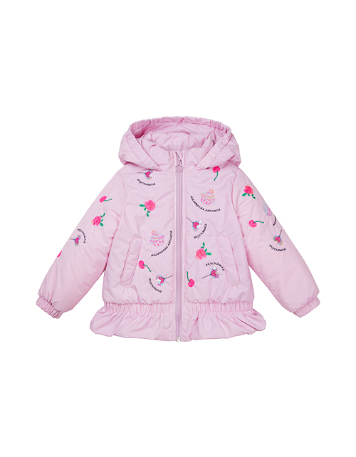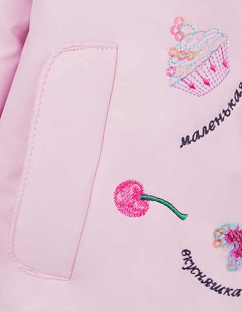 Милая курточка для самой очаровательной малышки! Привлекательная вышивка с любимыми "вкусняшками" подарит прекрасное настроение! Особую прелесть придаёт кокетливая рюша по низу изделия. Высокотехнологичная ткань обеспечит надежную защиту от холода и дождя