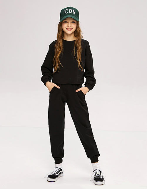 Черный сарафан прямого силуэта. Трендовая школьная модель для девочки. Сарафан дополнен тематическим значком.