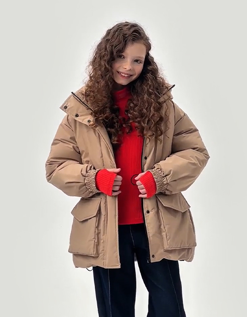 Бежевая зимняя куртка для девочки