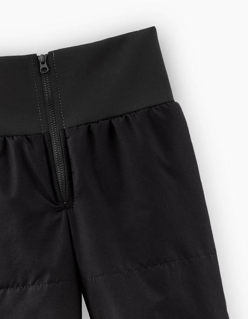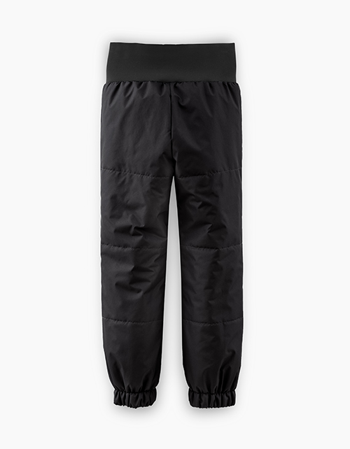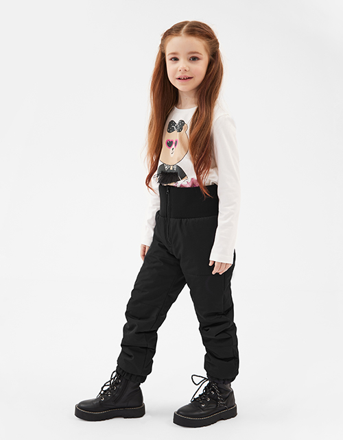 Функциональные черные утепленные брюки для девочки. Модель на эластичном высоком поясе, что дополнительно защищает спину в холод. Удобная застежка-молния на передней части.