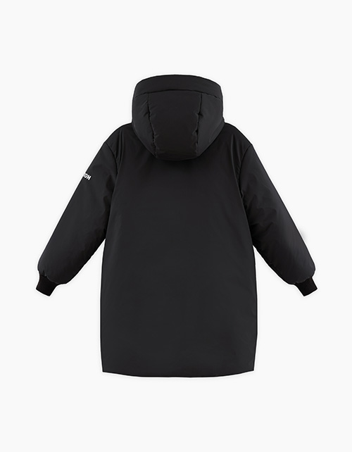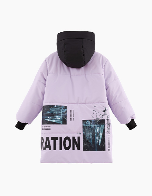 Двухсторонняя зимняя куртка. На чёрной стороне ветрозащитная планка на кнопках. Эластичные трикотажные манжеты. Утяжка по капюшону. Печать DTF, нашивной элемент. Гипоаллергенный силиконизированный синтепон. Рекомендовано до -20.