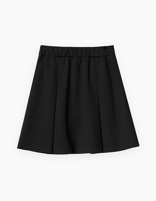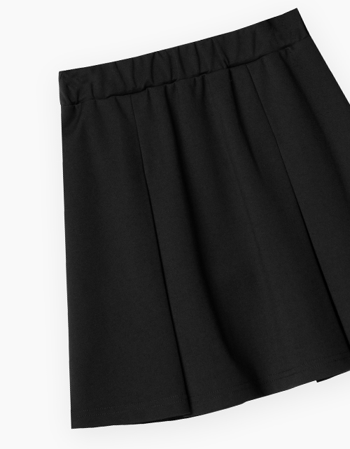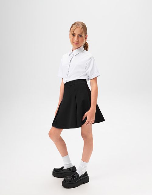 Чёрная школьная юбка для девочки. Комфортная повседневная трапециевидная модель со складками. Изделие со средней посадкой, на мягком поясе.