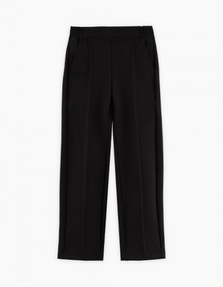 Брюки-парашюты из твила: держат форму и создают характерный объём за счёт защипов. Средняя посадка и комбинированный пояс с мягкой фиксацией обеспечивают комфорт. Боковые карманы практичны, металлическое полукольцо добавляет утилитарный акцент.