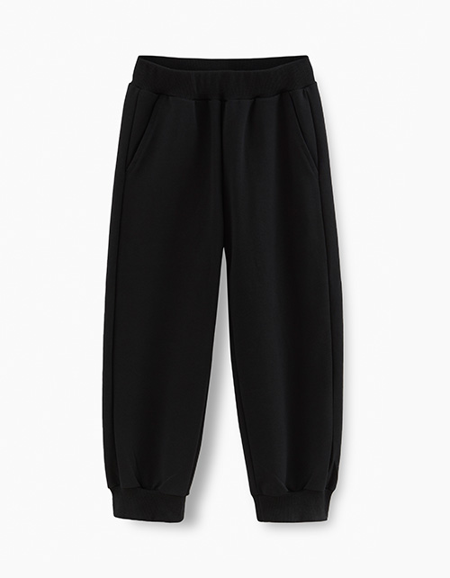 Стильные черные брюки-джоггеры для мальчика. Комфортная базовая модель прямого кроя на мягком поясе. Джоггеры со средней посадкой декорированы сзади надписи.