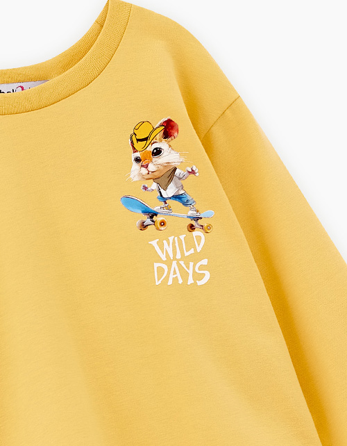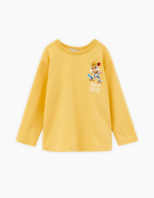 Дизайнерский лонгслив для мальчика. Модель комфортного прямого силуэта. Приспущенная линия плеча. Эластичная горловина. Лонгслив с авторским принтом.