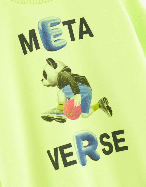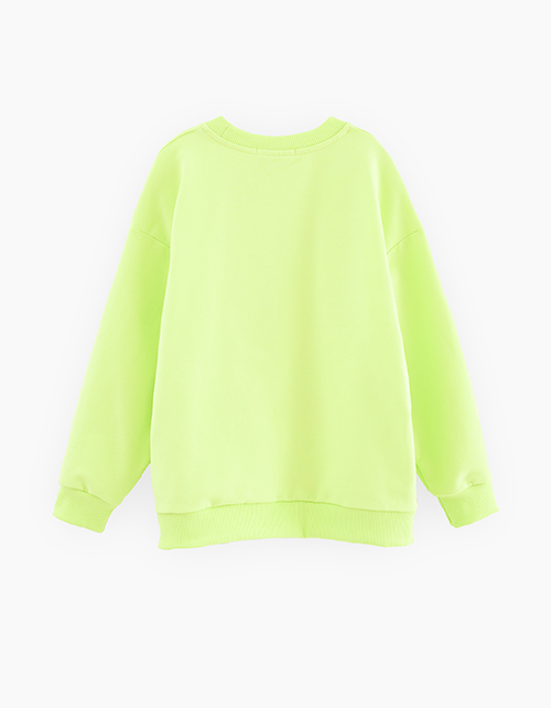 Свитшот сочного оттенка киберлайм с дизайнерским принтом. Модель прямого объёмного силуэта. Приспущенная линия плеча. Горловина, манжеты и низ изделия из рибаны. Свитшот из футера с бархатистым эффектом. Декорирован авторским принтом.