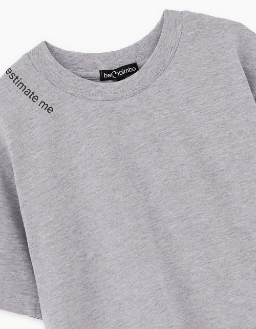 Футболка в оттенке серый меланж. Прямая модель со спущенной линией плеча. Удлинённые рукава и эластичная горловина из рибаны обеспечивают комфорт. Авторский мотивационный принт. Базовая модель, которая легко комбинируется и подходит для разных случаев.