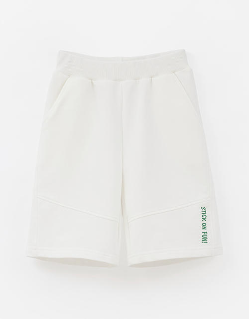 Молочные бермуды выполнены в прямом, широком силуэте и длине ниже колена. Футер делает модель комфортной и держит форму. Мягкий эластичный пояс обеспечивает удобную посадку, а боковые карманы и лаконичная шрифтовая плёнка добавляют аккуратные акценты.