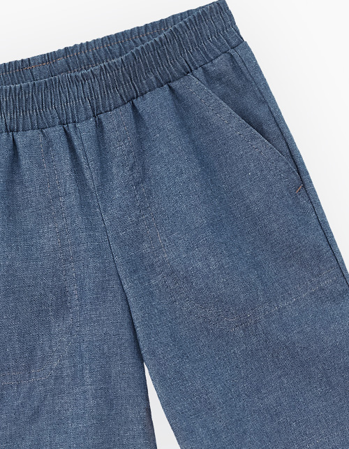 Шорты из облегчённого джинса для мальчика. Модель прямого силуэта. Изделие на мягком поясе, со средней посадкой. Шорты дополнены карманами-хулиганами.