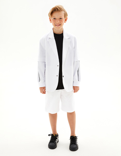 Белые шорты из твила. Модель прямого силуэта. Средняя посадка, мягкий эластичный пояс. Дополнены карманами-хулиганами. Лаконичный декор репсовой тесьмой. Можно позиционировать как модель унисекс.