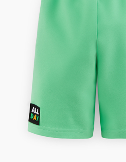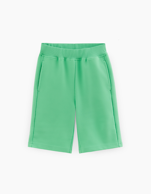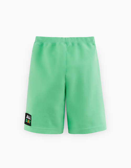 Яркие летне-зелёные шорты для мальчика. Удобная модель прямого силуэта со средней посадкой. Изделие из футера с браш-эффектом на мягком поясе декорировано вышивкой.