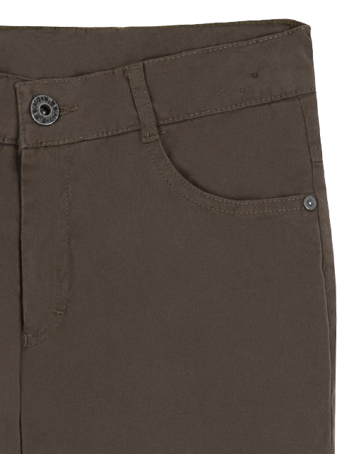 Брюки для мальчика в цвете хаки имеют прямой фасон и классический дизайн. Изделие дополнено застежкой на молнии, двумя накладными и двумя внутренними карманами. Ткань твил гарантирует износостойкость, а подкладка из флиса дарит тепло и комфорт.