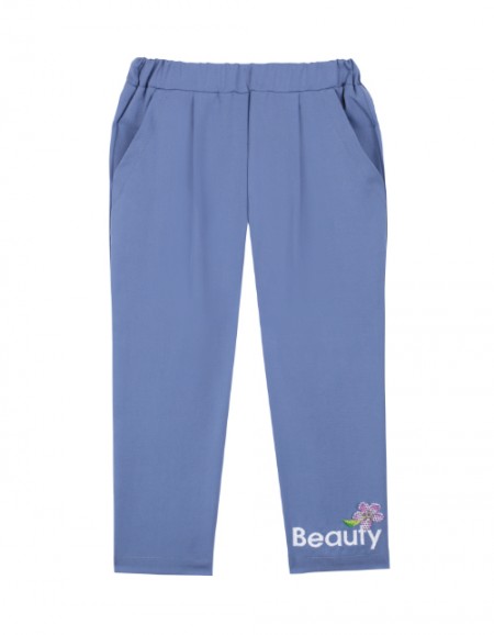 Стильные брюки с милой вышивкой для маленькой активной модницы. Зауженные книзу, они сшиты из мягкой и приятной к телу натуральной ткани. Золотистый эластичный поясок, блестящие канты по боковым швам изделия гармонично складываются в образ спорт-шик.