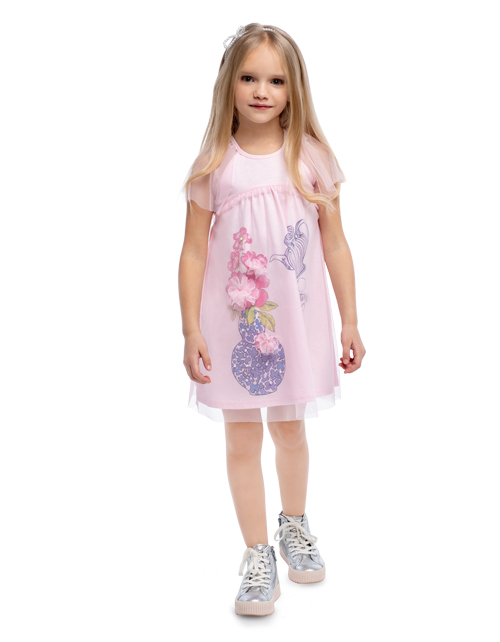 Брюки-кюлоты для девочки цвета деним свободного силуэта. Эластичная талия с завязывающимся бантом по переду. Функциональные карманы. Оформление в стилистике капсулы "Чаепитие в саду.