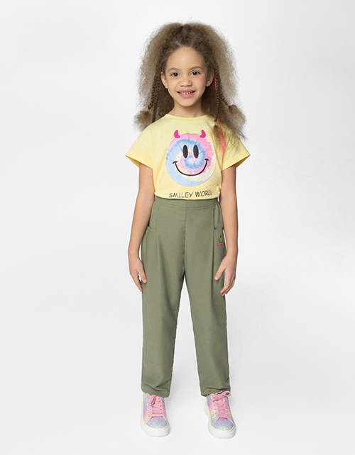 Стильные оливковые брюки-каррот на эластичном поясе. Комфорткая повседневная модель с боковыми карманами.
