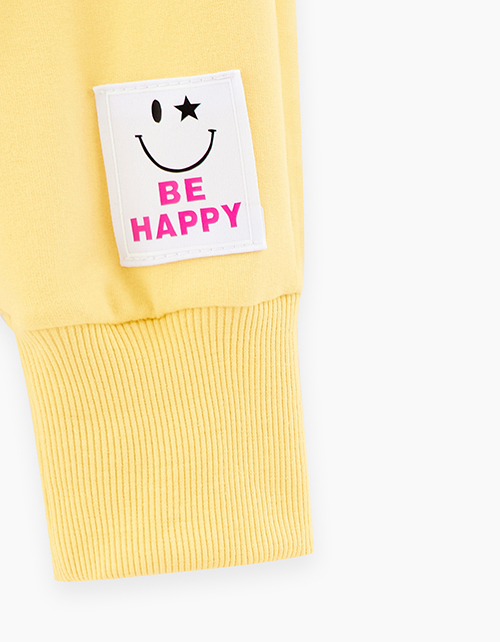 Светло-желтые брюки-джоггеры с эластичным поясом. Модель выполнена из мягкого футера с браш-эффектом.
