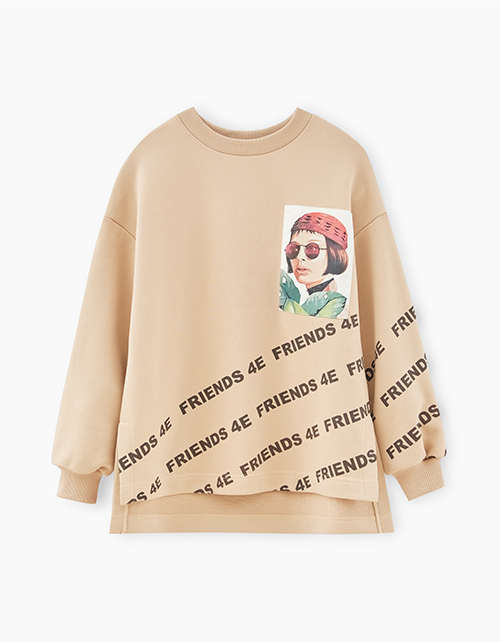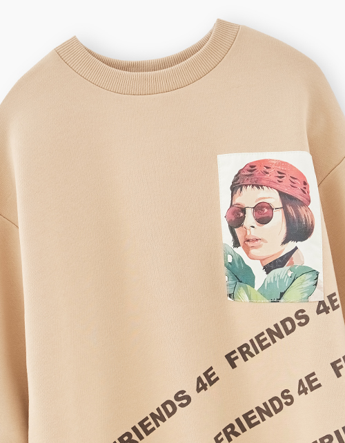 Свитшот в трендовом оттенке "сливочный латте". Повседневная модель с тематическим принтом.