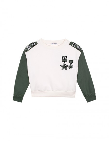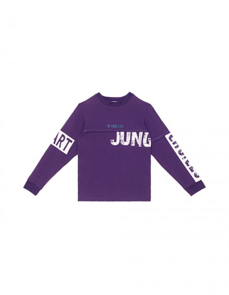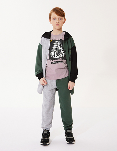 Свитшот в трендовом оттенке "Красная слива" для мальчика. Модель декорирована нашивкой и тематическим принтом.