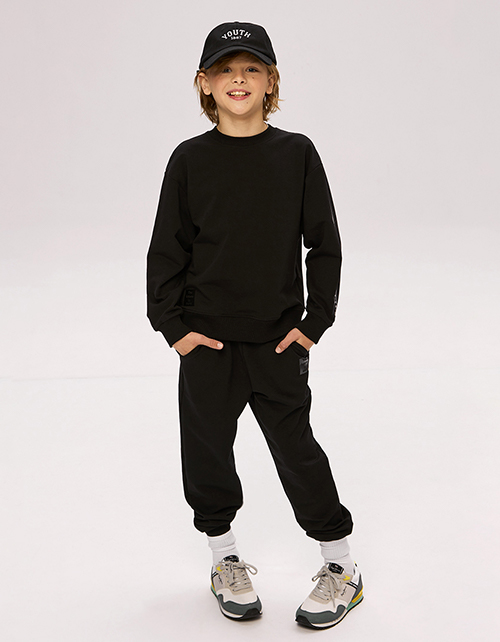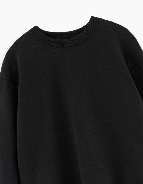 Стильный черный свитшот для мальчика. Модель отлично одойдет для создания повседневных и спортивных образов.