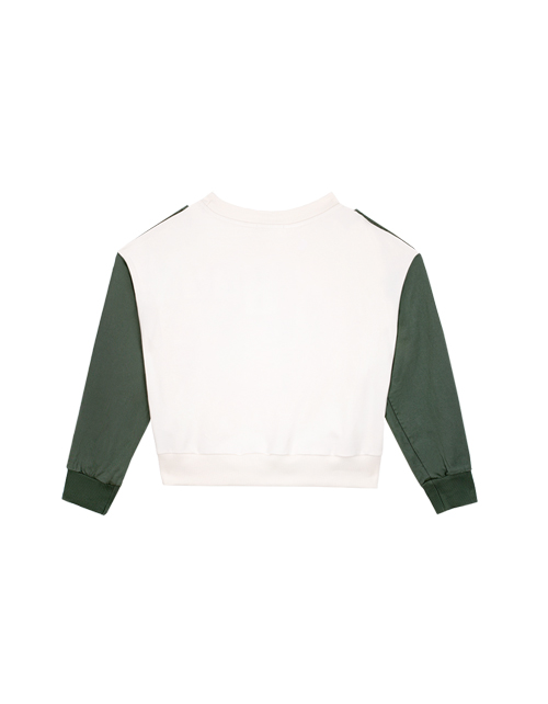 Молочный джемпер для девочки с круглым вырезом горловины. Манжеты и низ из рибаны. Вышивки, стразы и принты в дизайнерской стилистике капсулы "Армия стиля".