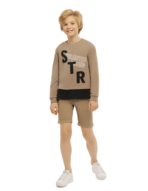 Джемпер для мальчика прямого силуэта баклажанного цвета. Рукава на манжетах из рибаны. Принт в стилистике капсулы "Городские джунгли".