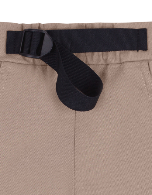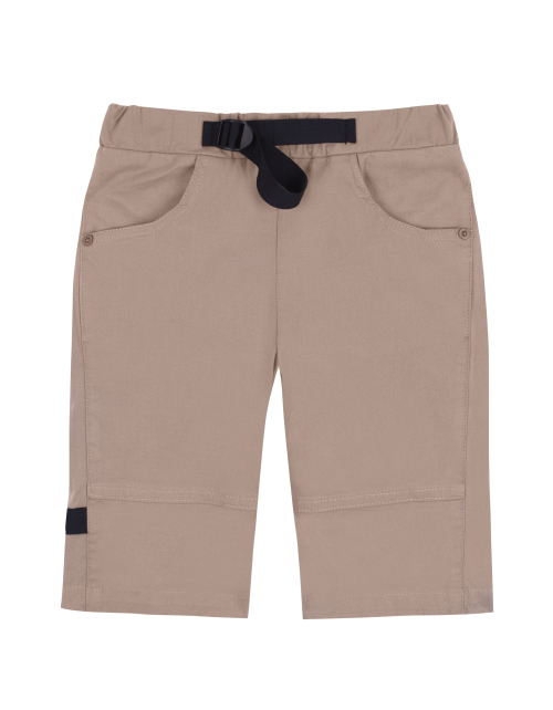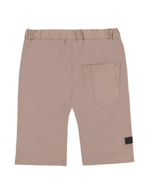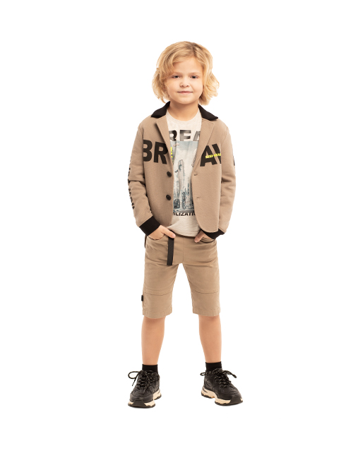 Бежевые шорты для мальчика с эластичным поясом. Репсовая лента по поясу для дополнительной регулировки размера. Дизайнерское оформление в стилистике капсулы "Новый мир".