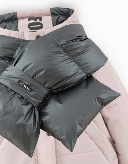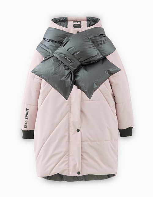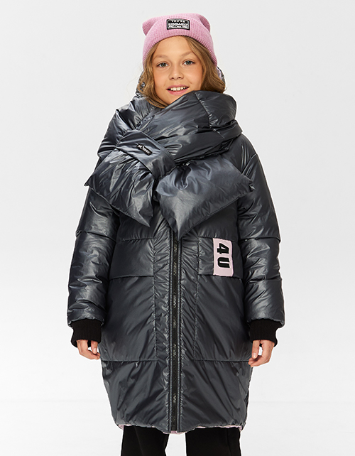Стильная зимняя двусторонняя куртка с модным аксессуаром - лимитированным шарфоом. Модель пепельно-розового цвета трансформируется в черный повседневный вариант. Куртка с наклонными боковыми карманами выполнена из ткани с матовым покрытием.