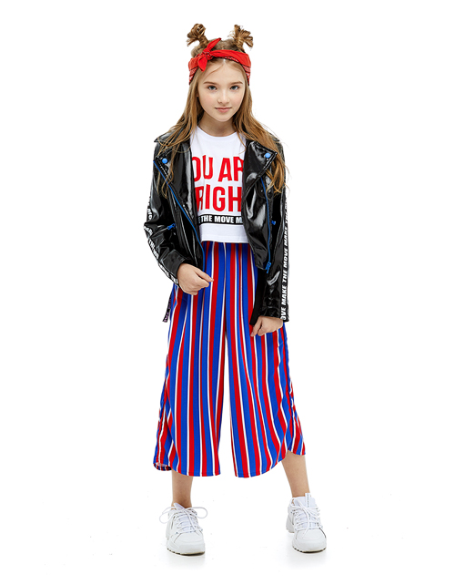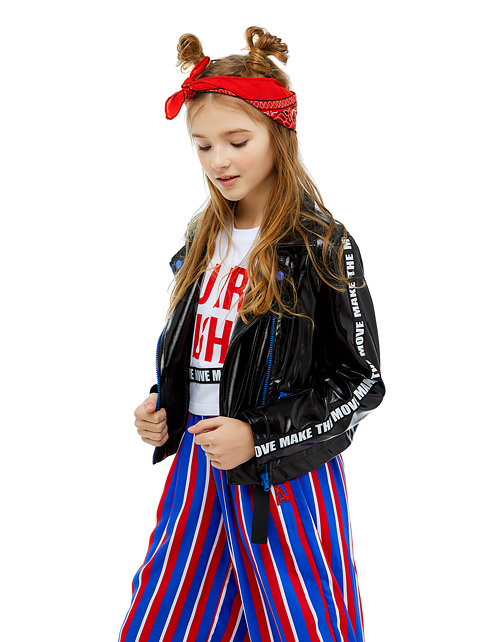 Трендовая куртка-косуха сделает девочку самой яркой! В ней просто невозможно остаться незамеченной! Ультрамодное сочетание блестящей экокожи, ультрамариновой фурнитуры и лампас с мотивационными надписями, делают эту модель невероятно модной и эффектной