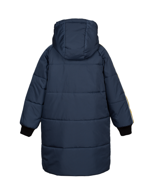 Куртка для мальчика на синтепоне дополнена капюшоном с затяжками и высоким воротником, двумя карманами, вышивкой и манжетами на рукавах. Ткань курточная добби не промокает и не продувается ветром, а подкладка из флиса и нейлона дарит комфорт в носке.