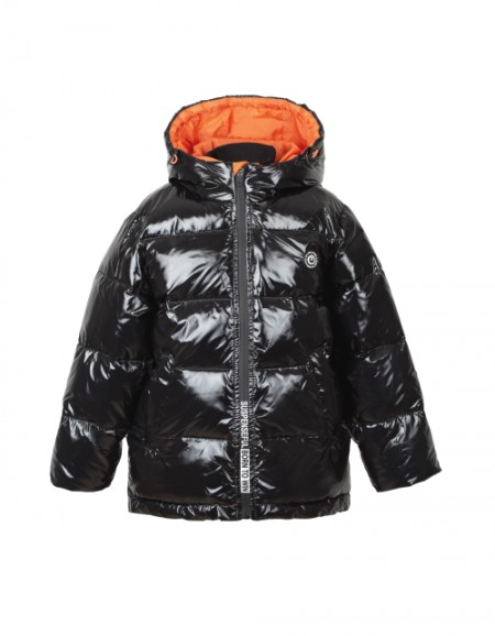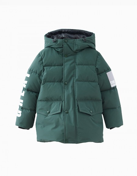 Куртка на пуху прямого силуэта дополнена застежкой молнией, капюшоном и двумя накладными карманами, декорированными мехом и бусинами. Ткань плащевая матовая дьюспо не пропускает влагу, а подкладка из вельбоа и нейлона дарит комфорт в носке.