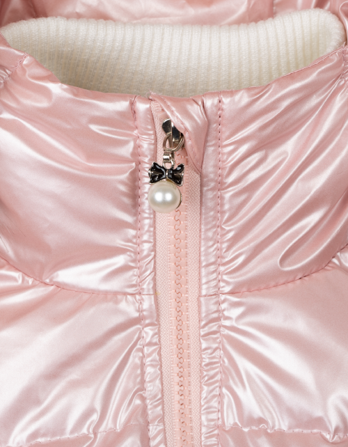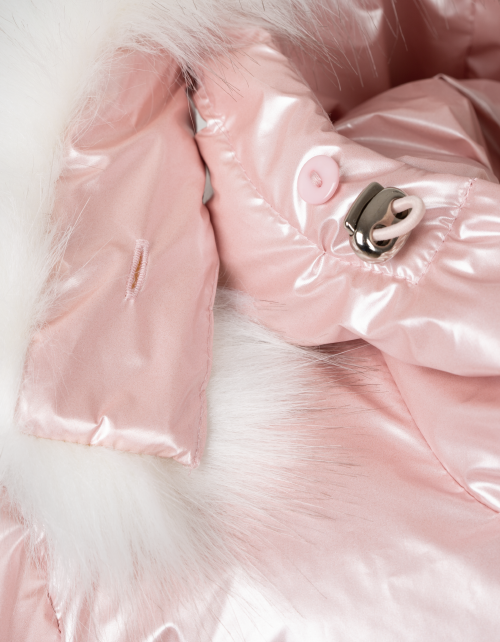 Куртка для девочки на пуху приталенного силуэта дополнена застежкой молнией, капюшоном с мехом и высоким воротником. Ткань плащевая дьюспо с жемчужным покрытием не пропускает влагу, а подкладка из флиса и нейлона гарантирует комфорт в носке.