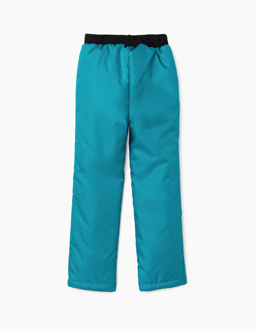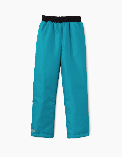 Теплые брюки для девочки. Прямого силуэта, на эластичной трикотажной резинке. Выполнены из плащевой ткани черного цвета с водоотталкивающими свойствами. Утеплены синтепоном
