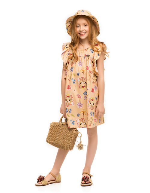 Набивная юбка для девочки трапециевидного силуэта. Эластичная талия. Функциональный затягивающийся ремешок с полукольцами. Оформление в стилистике капсулы "Цветочное сафари".