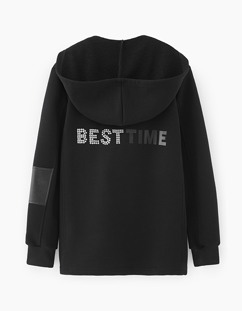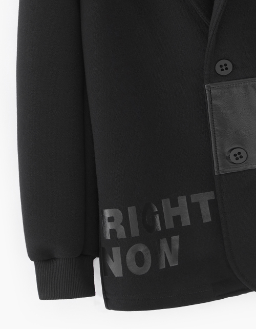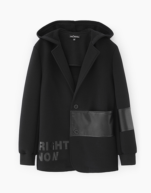 Стильный пиджак на мальчика. Модель с капюшоном и отделкой экокожей. Акцентные карманы.