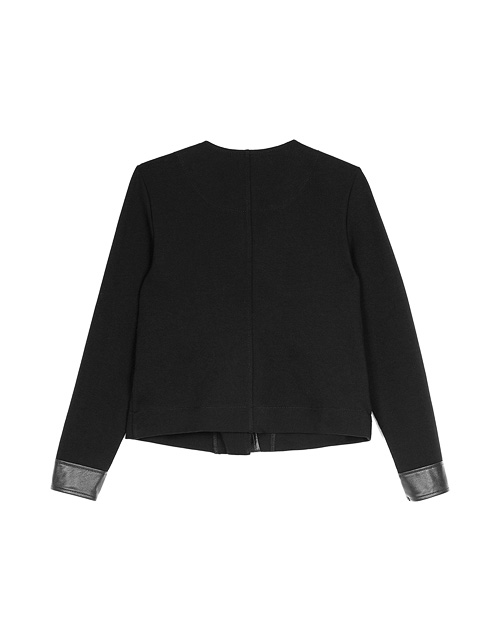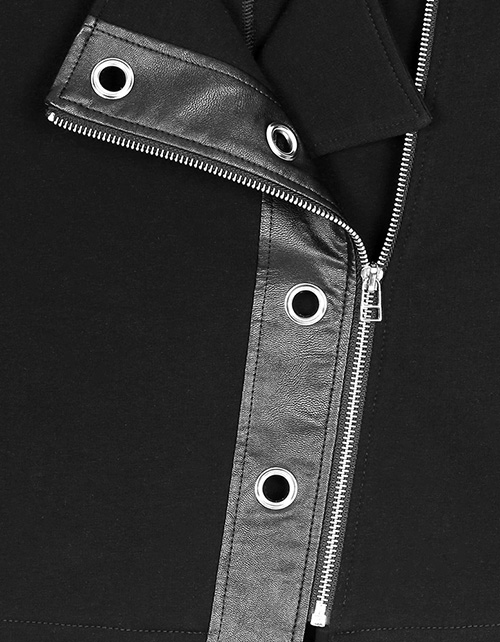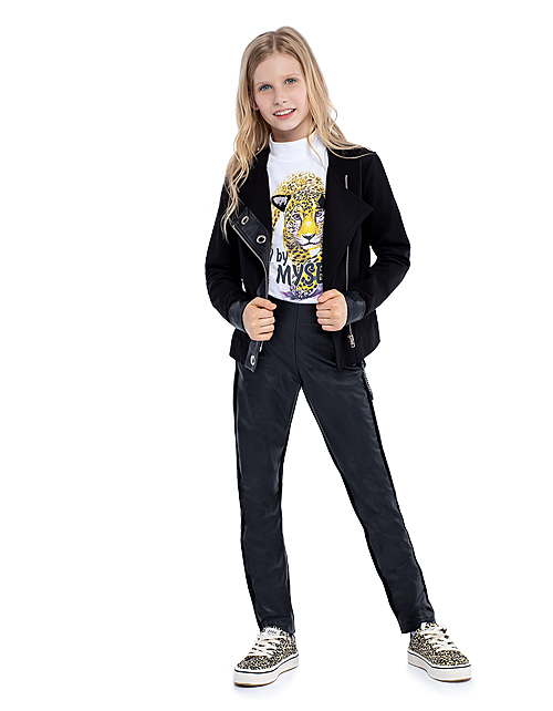 Жакет для девочки свободного силуэта в стиле косухи дополнен застежкой на молнии и двумя внутренними карманами. Вставки из кожзама на манжетах и в районе застежки украшают изделие. Ткань футер гарантирует износостойкость и комфорт в носке.